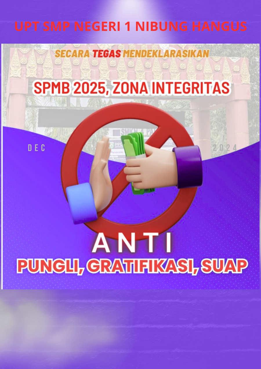 Player Bebas Pungli/Suap/Gratifikasi SPMB Tahun Pelajaran 2025-2026 UPT SMP Negeri 1 Nibung Hangus